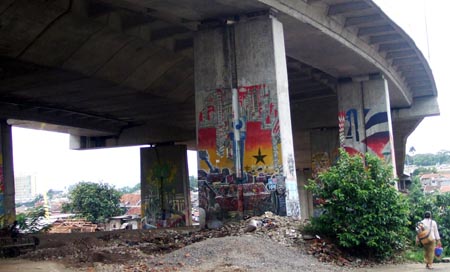 Art murals in graffiti on the bridge overpass "JANTI"